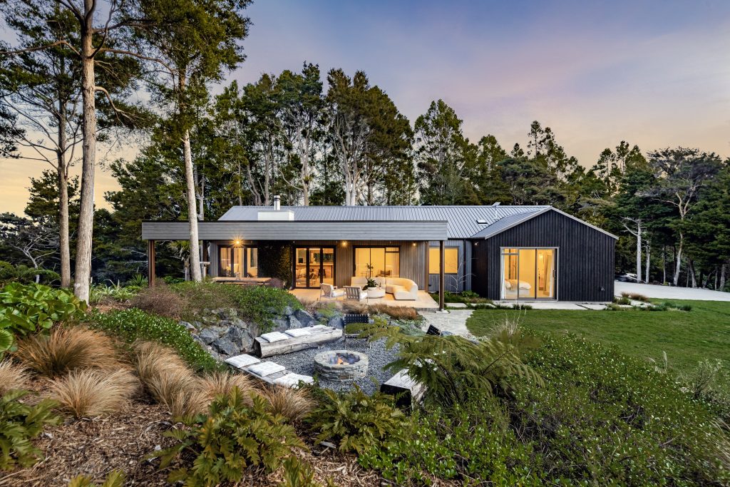 Tucked away in native New Zealand bush, this designer sanctuary blends modern elegance with natural serenity.