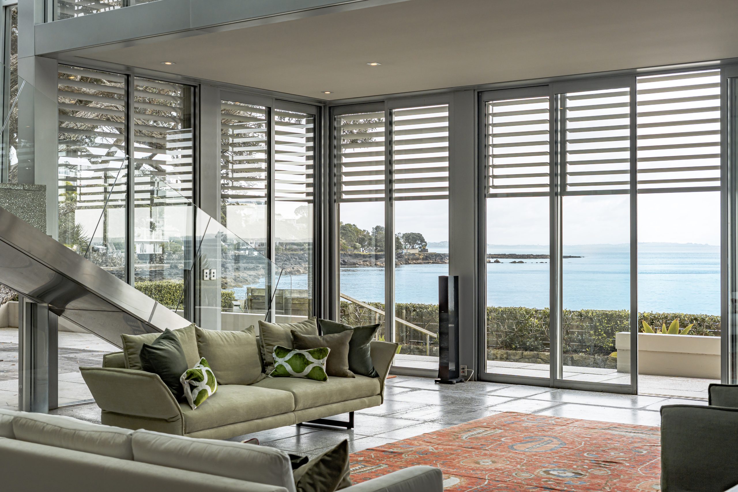 Framing the ocean, the expansive glazing bathes the interior in light, connecting it with the tranquil coastal scenery